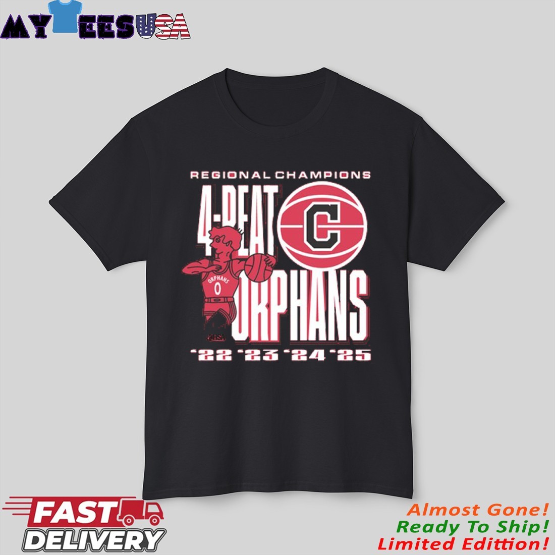 MyteesUSA - Official Orphans Centralia High School Basketball 4-Peat Regional Champions Shirt