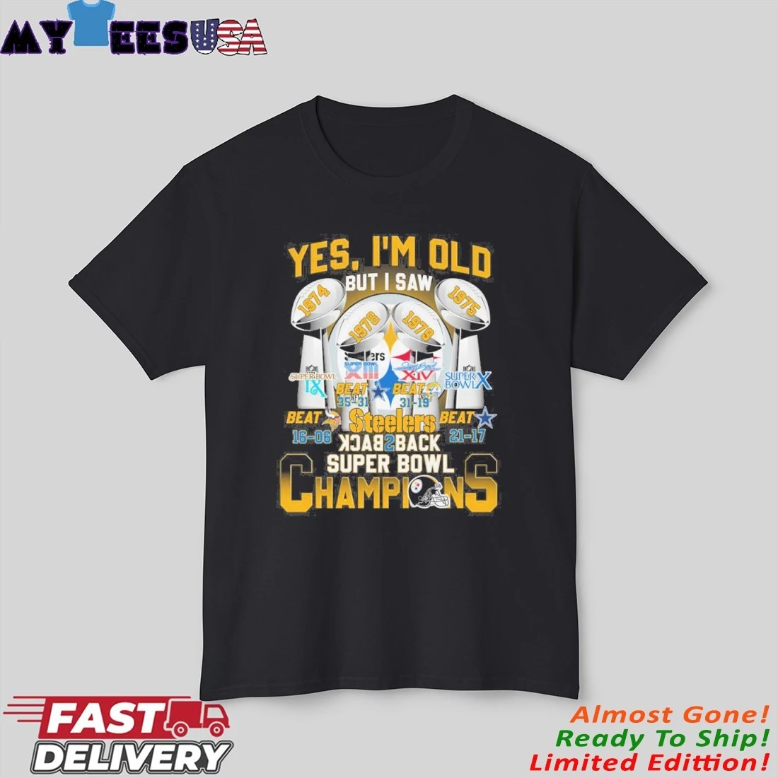 MyteesUSA - Official Yes I’m Old But I Saw Steelers Back 2 Back Super Bowl Champions Shirt