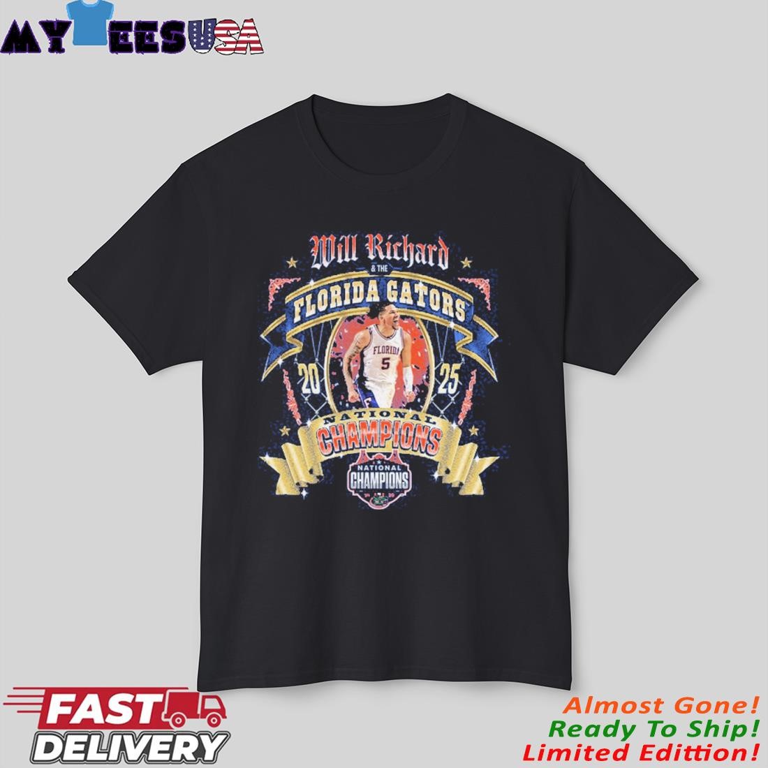 MyteesUSA - Will Richard Florida Gators 2025 NCAA Men’s Basketball National Champions T-Shirt